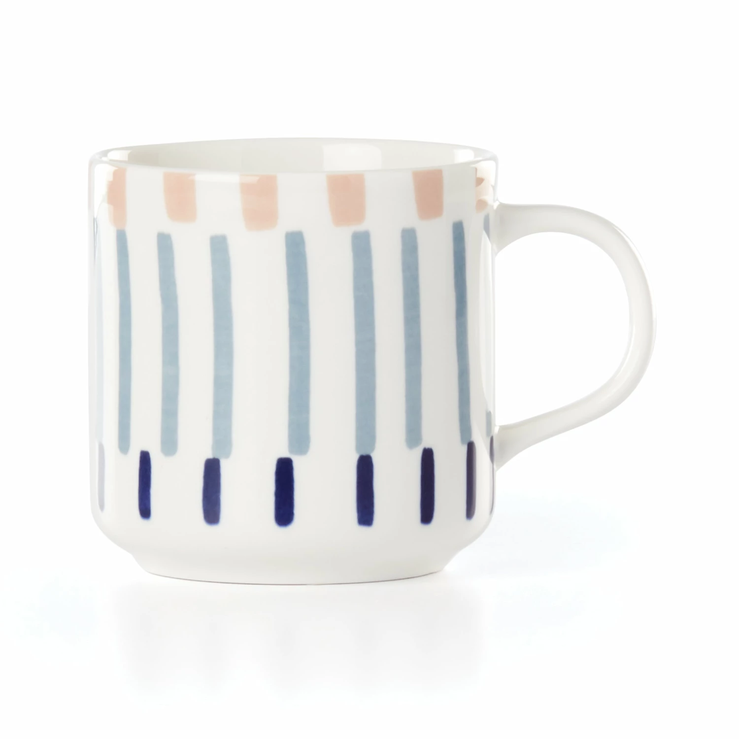 The vivid stripes on this Kate Spade New York mug provide an elegant backdrop. Plus, it’s made of dishwasher and microwave-safe porcelain–which means easy cleanup!