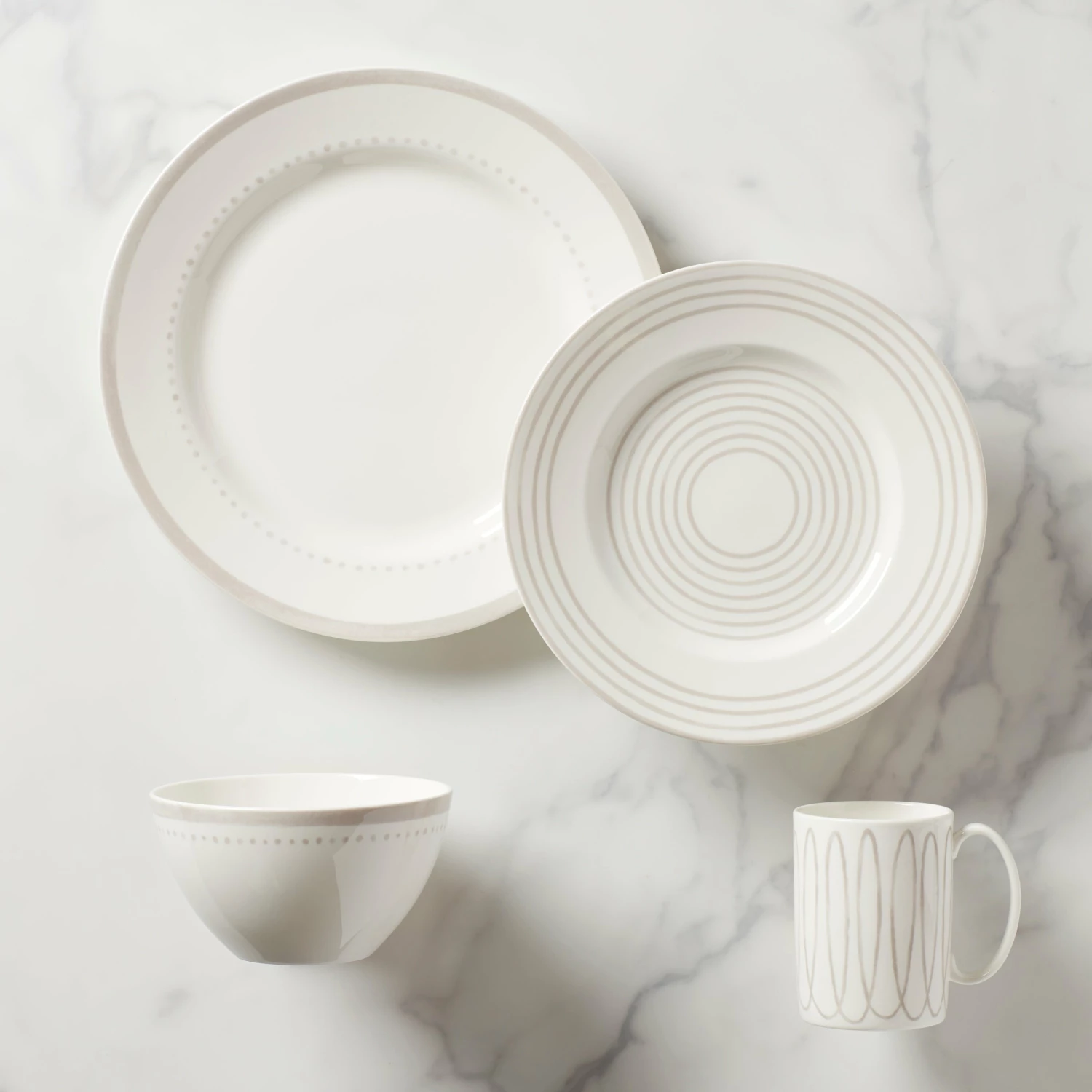 Because every meal β whether it is a multi-course homemade masterpiece or Chinese takeout and cupcakes β deserves a perfectly pretty place setting. Like this 4-piece place setting from the Charlotte Street Grey West Collection, crafted of microwave and dishwasher-safe durable white ceramic porcelain. Bon appetit!