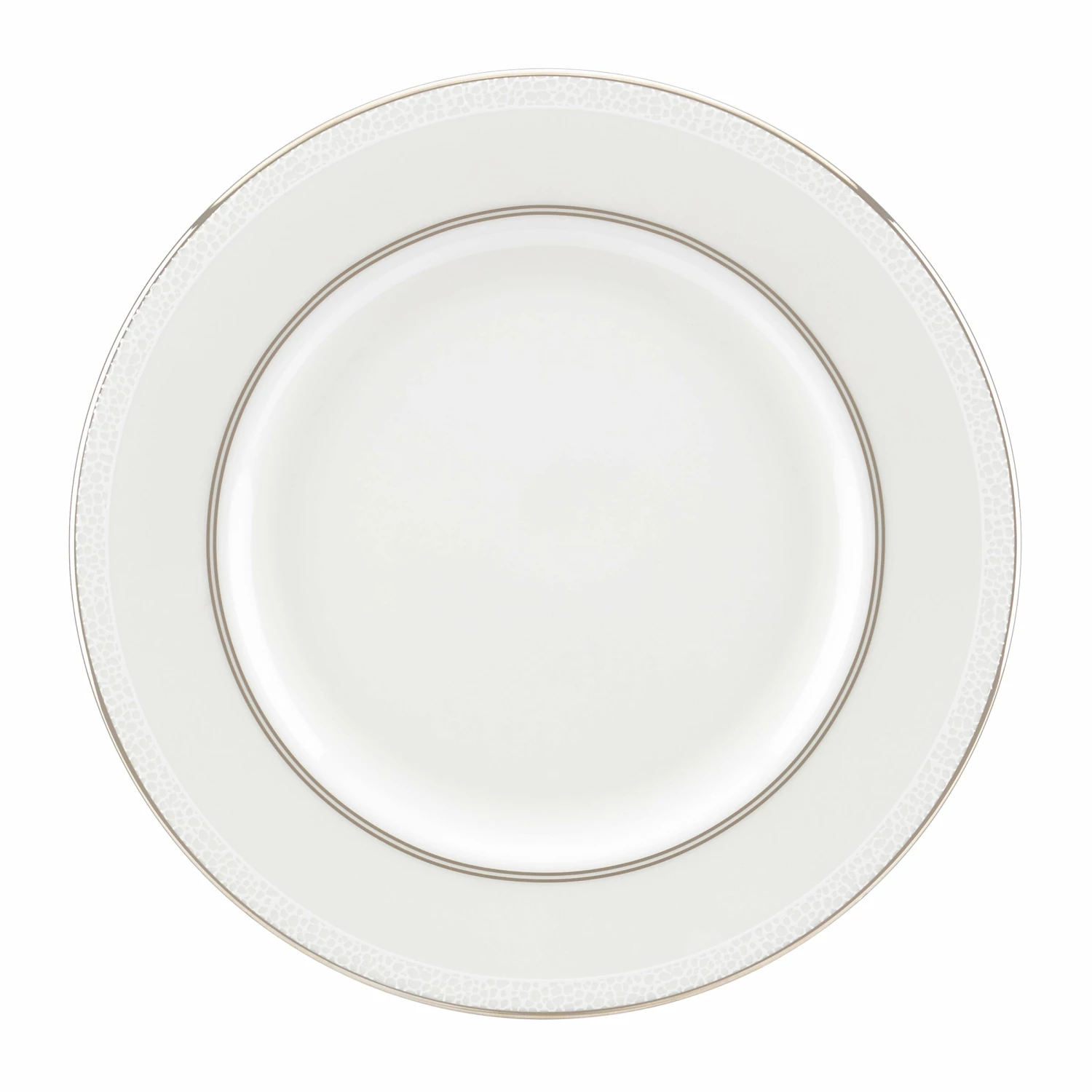 This durable white bone china collection features a delicate band of detail along the rim that is reminiscent of a cobblestone pathway. From Kate Spade New York, the Cypress Point Salad Plate features precious platinum accents, and is dishwasher-safe.