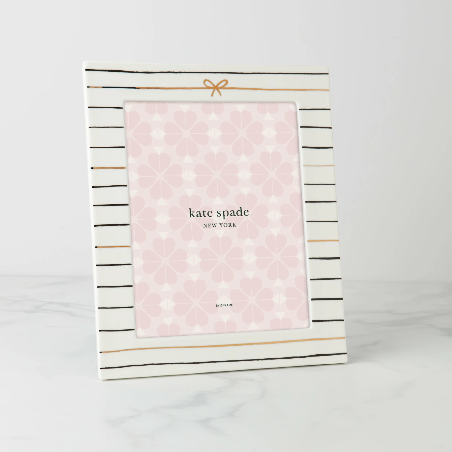 Picture perfect! A thoughtful place to display a favorite memory, this 8×10 frame features thin silver and gold stripes and a petite bow.