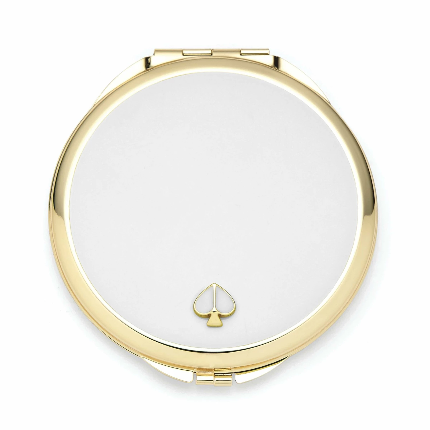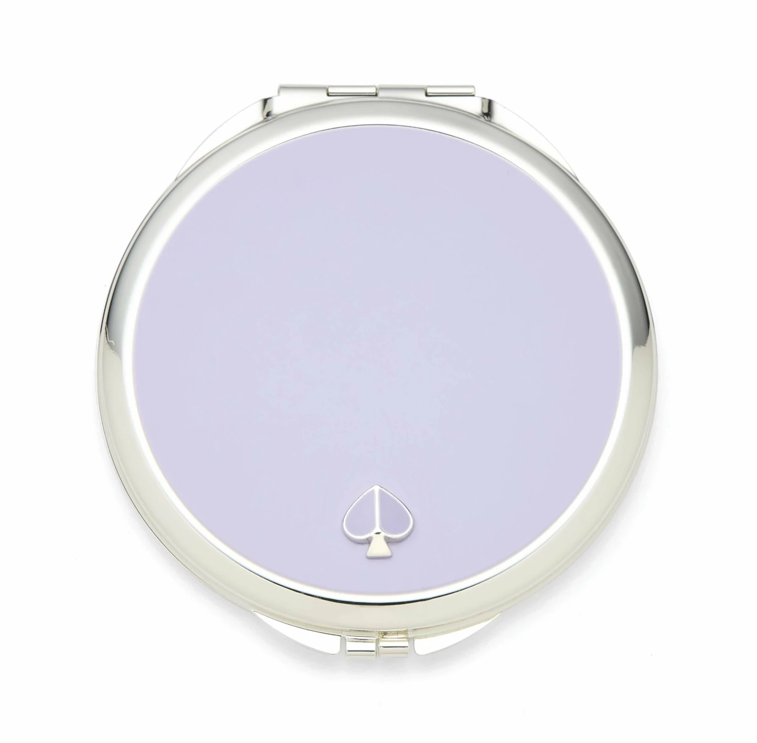 Here’s a very sleek compact from our Kate Spade New York’s Spade Street collection. It’s modern, classic and comes in the prettiest colors. And it’s made from smooth metal so it’s durable and feels really nice to hold while touching up your lipstick. Special details like the angular gold-tone edges and faceted spade are favorite finish touches.