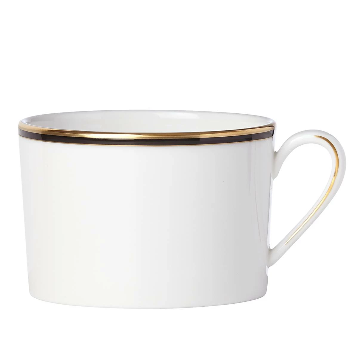 Bands of black and gold lend the Library Lane Black Collection a sophisticated look. From Kate Spade New York, this cup is crafted of durable white bone china with gold accents, and is dishwasher-safe.