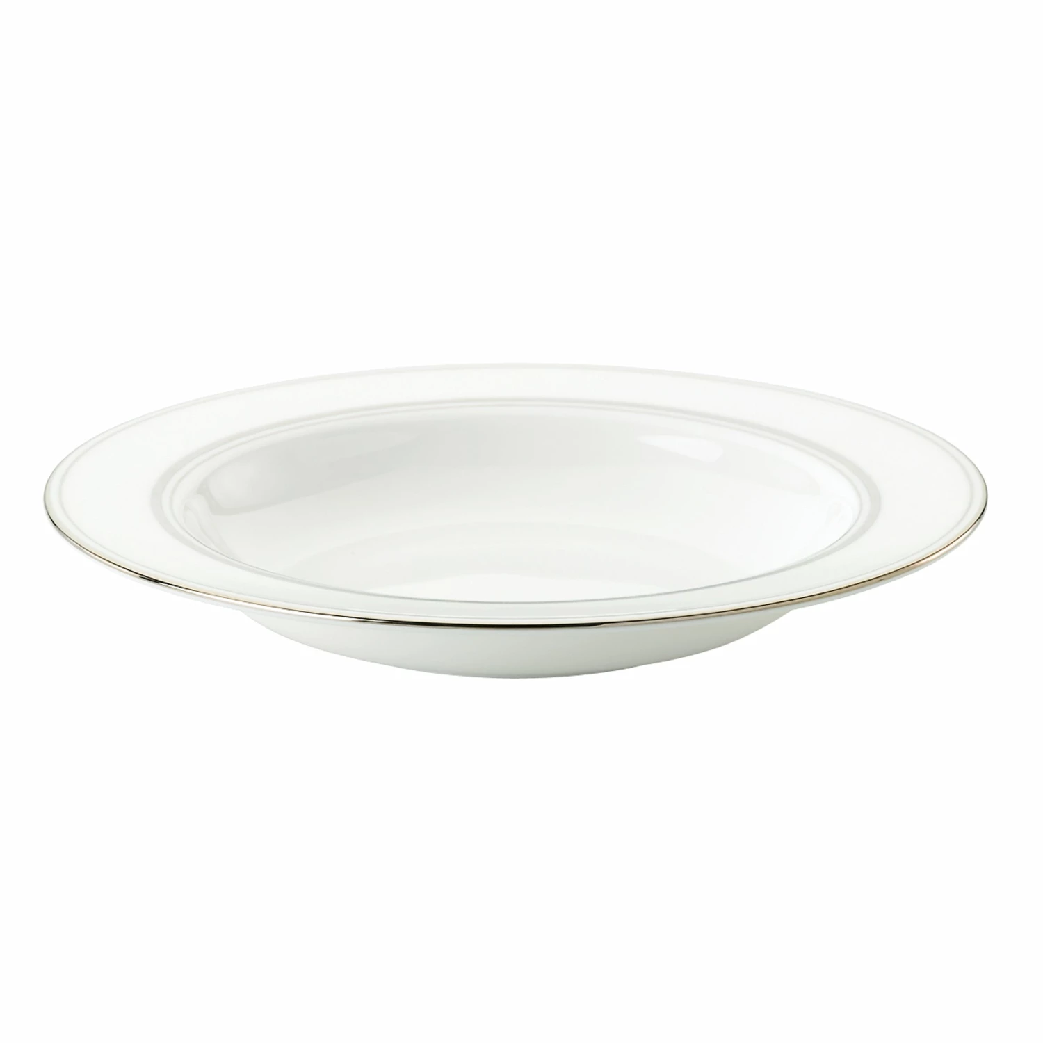 Bands of platinum lend the Library Lane Platinum Collection a sophisticated look. From Kate Spade New York, this rimmed bowl is crafted of durable white bone china with precious platinum accents, and is dishwasher-safe.