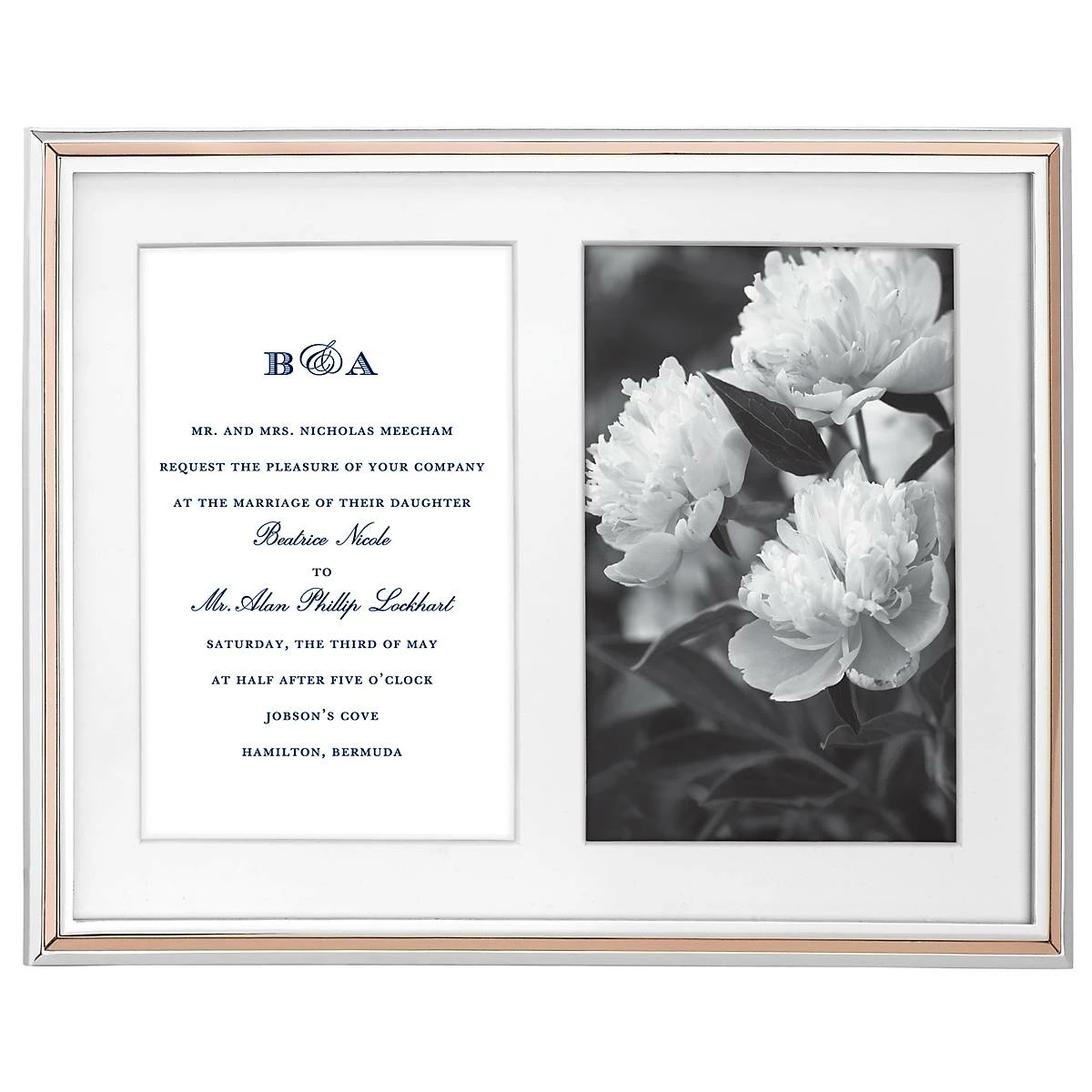 Because the special day should be nothing but rosy, the Rosy Glow Collection adds a piece of glam to that day. This double 5″ x 7″ frame is crafted from durable metallics with silver-plating.