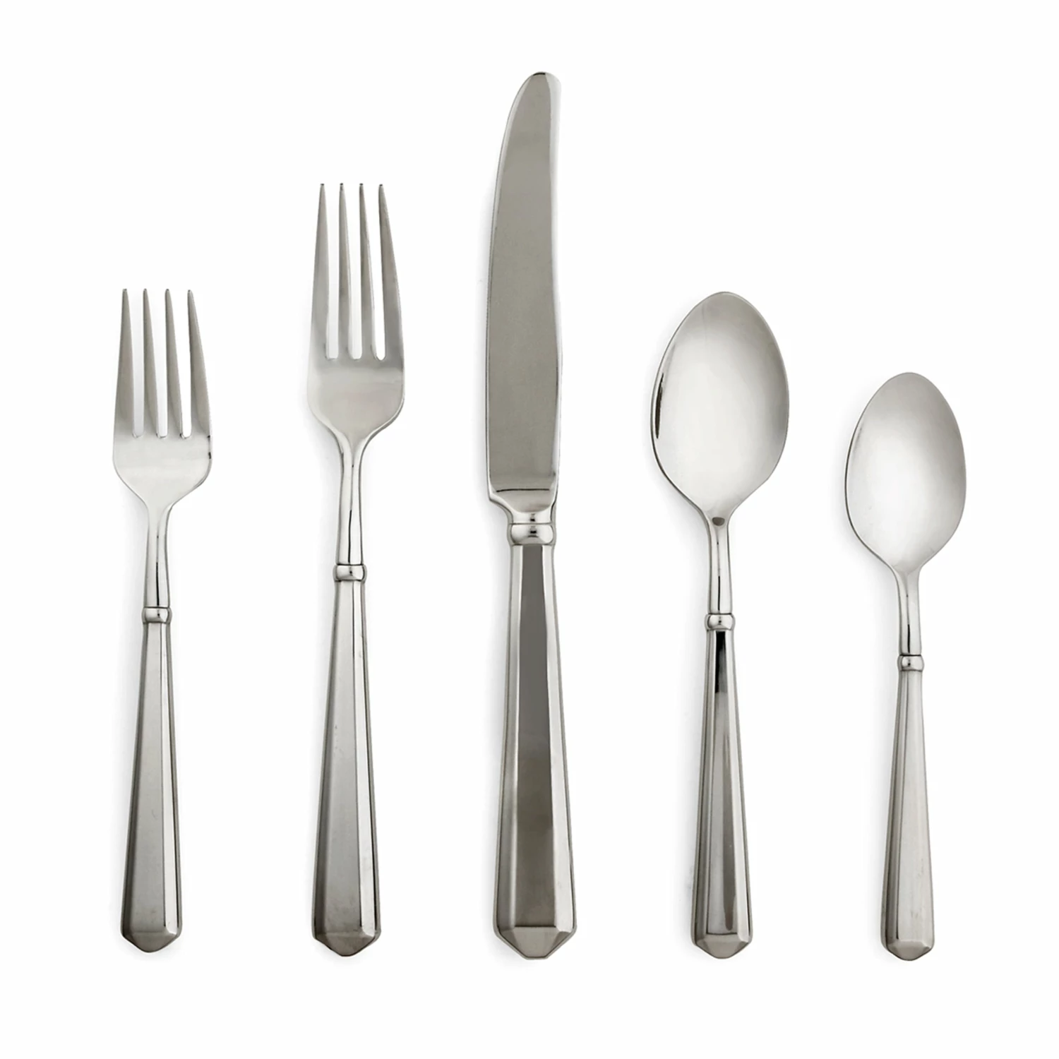 The faceted handles of this flatware collection give the stainless steel a special shine. From Kate Spade New York, the Todd Hill 5-piece Flatware Set is tarnish-resistant and dishwasher-safe.