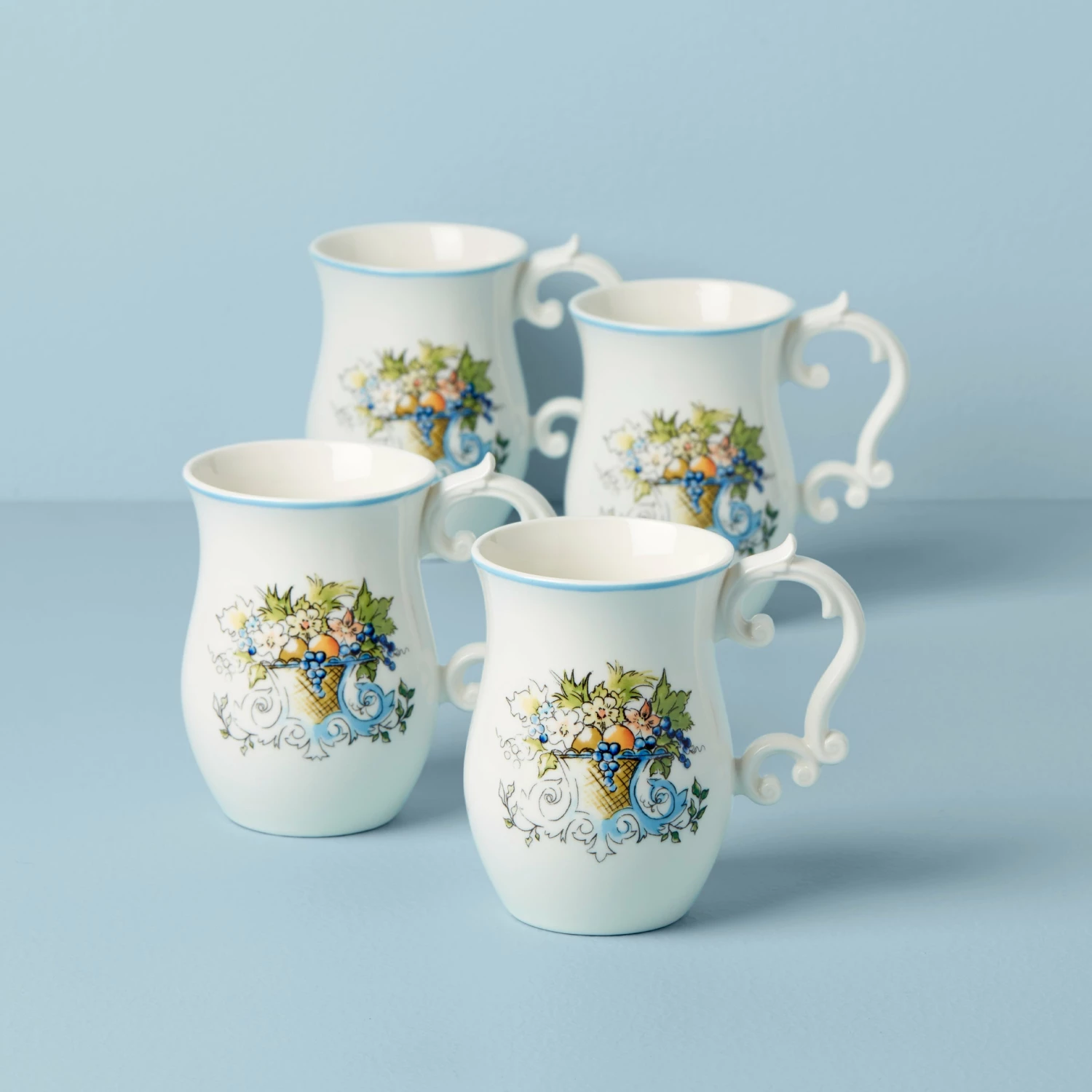This artistic update of our 1918 Autumn pattern features lush watercolors and a masterpiece-in-the-making sketchbook effect. Autumn Studio is a love letter to our legendary collection; featuring the same cornucopia motif now on durable white porcelain that is both dishwasher and microwave safe. This 4-piece mug set honors our history and modernizes it for today with its beautiful ornate handles, curved design and painterly finish.