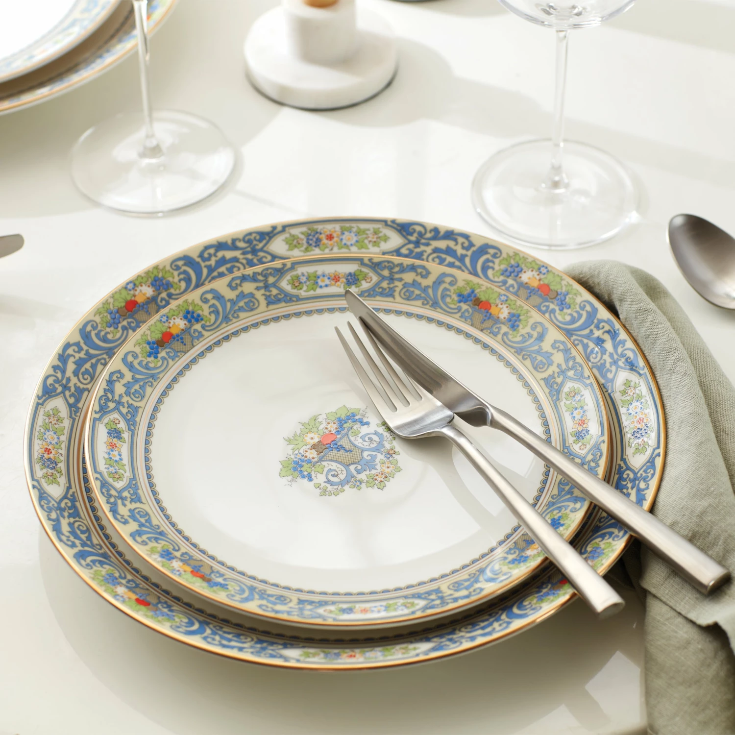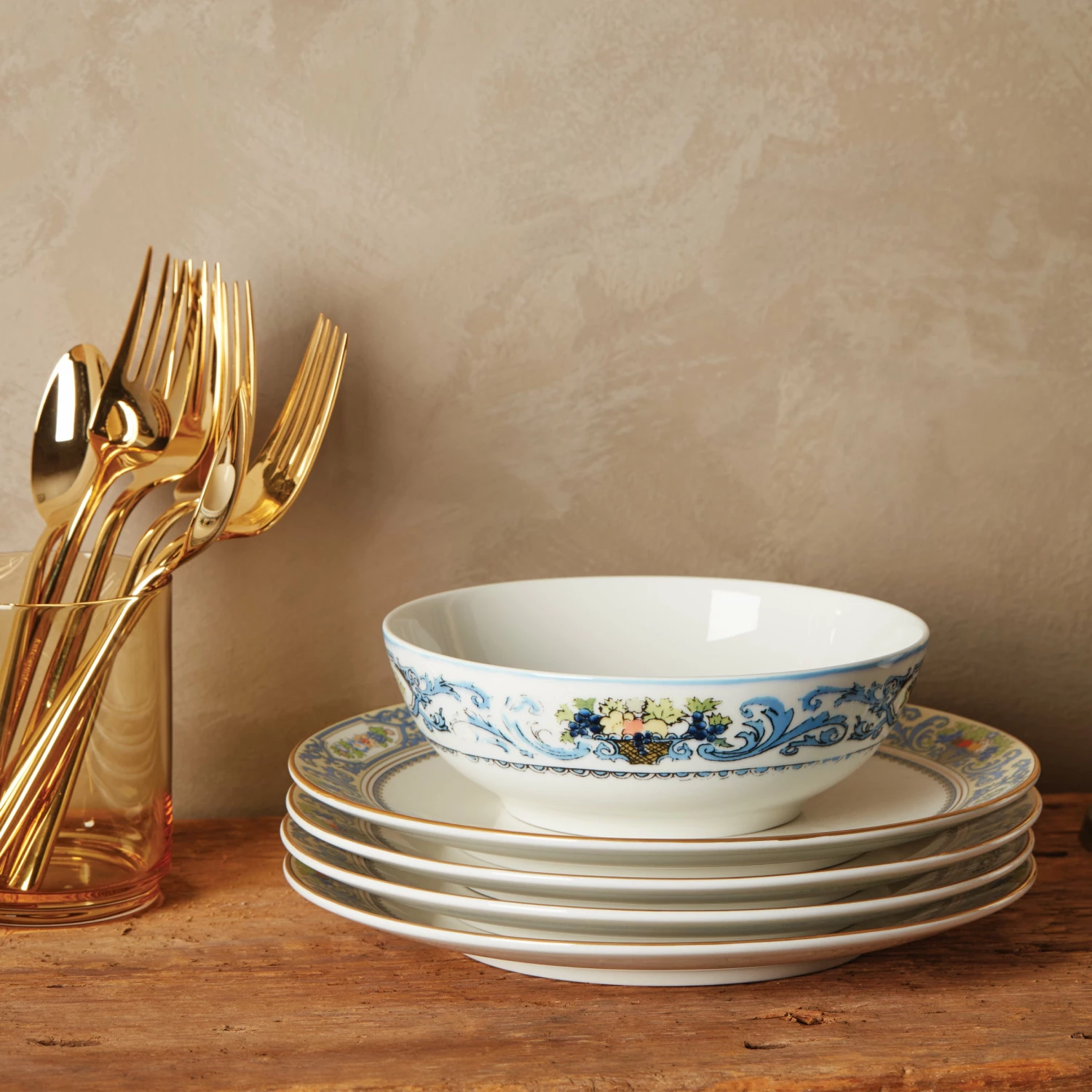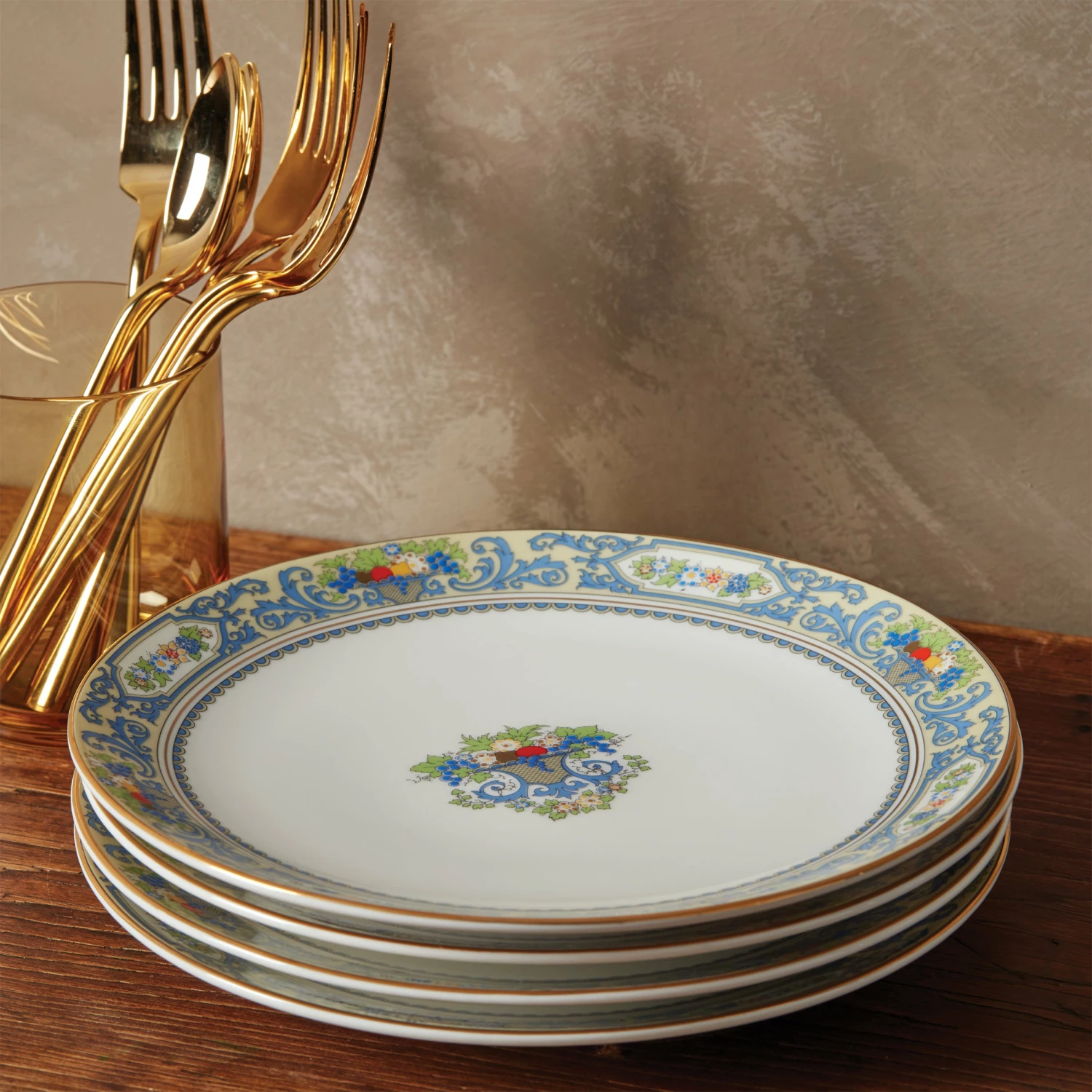 A 1918 classic comes back to life with our pristine Autumn White collection. This 4-piece dinner plate set features the same signature cornucopia design of our iconic Autumn pattern, now in a durable (and dishwasher-friendly!) porcelain with a contemporary coupe shape. We finished it with glistening, 24k gold accents for a luxe touch. It’s an easy and affordable way to bring the legacy of Autumn to your home.