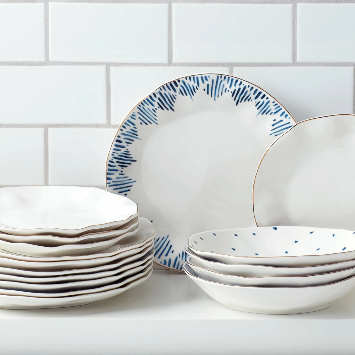 Serve anything from the main course to dessert on our Blue Bay dinner plates. Featuring organic textures and a delicate gold banding, these porcelain plates are fun, yet casual, making them ideal for any setting. Plus, they are both dishwasher and microwave safe!