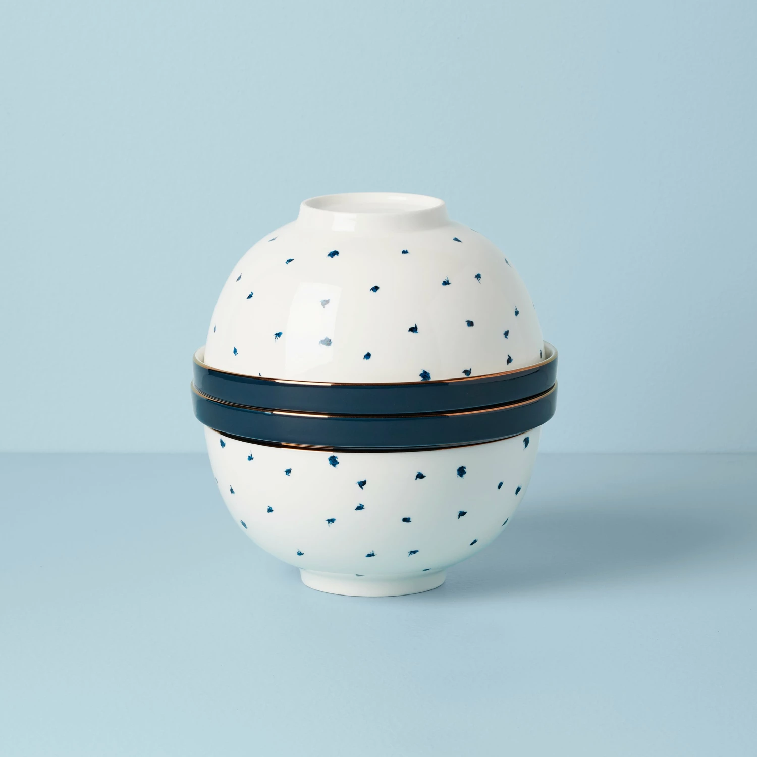 Everyone’s favorite nesting dinnerware set is now available in our Blue Bay collection. Featuring patterns of dots, stripes, ikats, and leaves with a rich blue color, this set stows six bowls and two plates inside. Take it apart to use or keep it together for a statement piece!