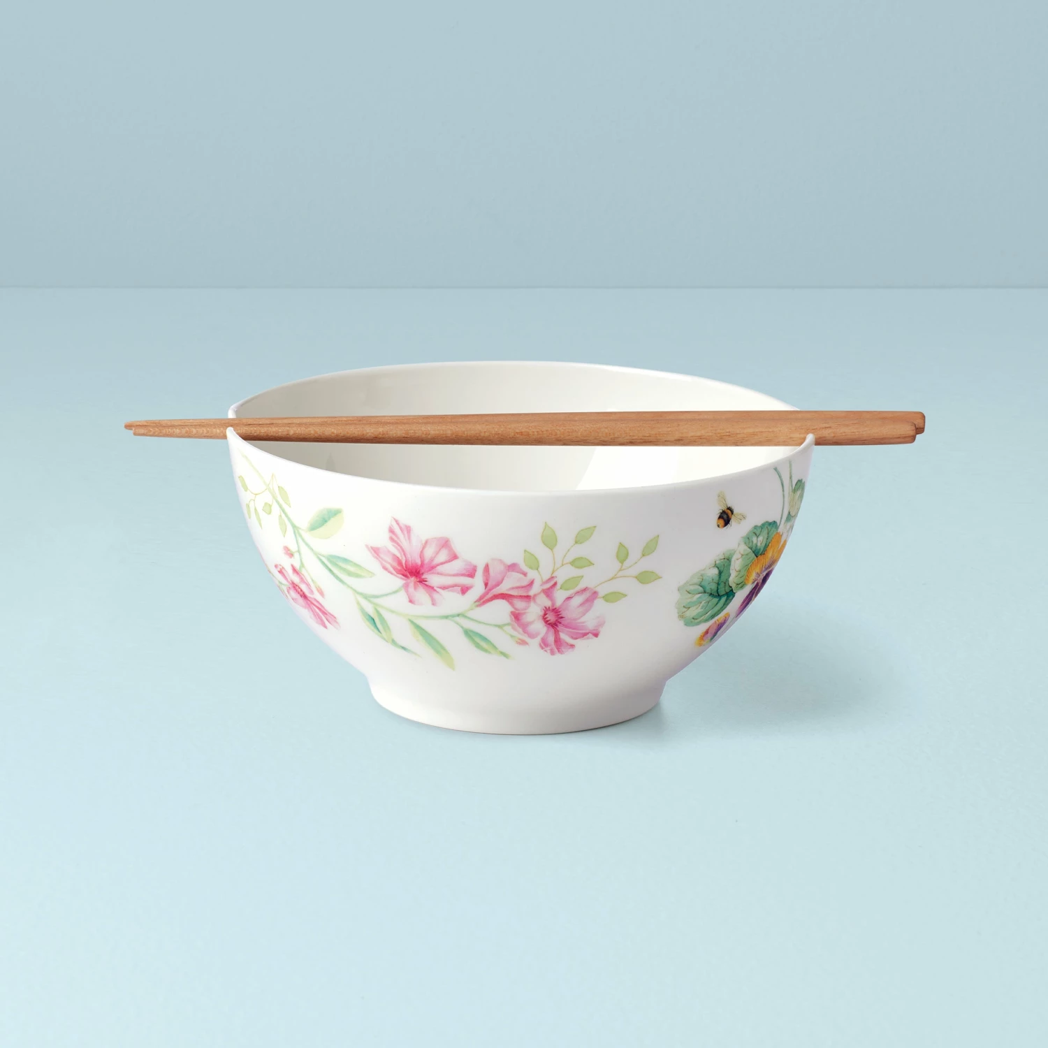 This unique capsule assortment from our best-selling Butterfly Meadow collection is designed to coordinate with your favorite Asian cuisines and drinks. We created this porcelain bowl for enjoying noodle dishes, along with a pair of coordinating wooden chopsticks.