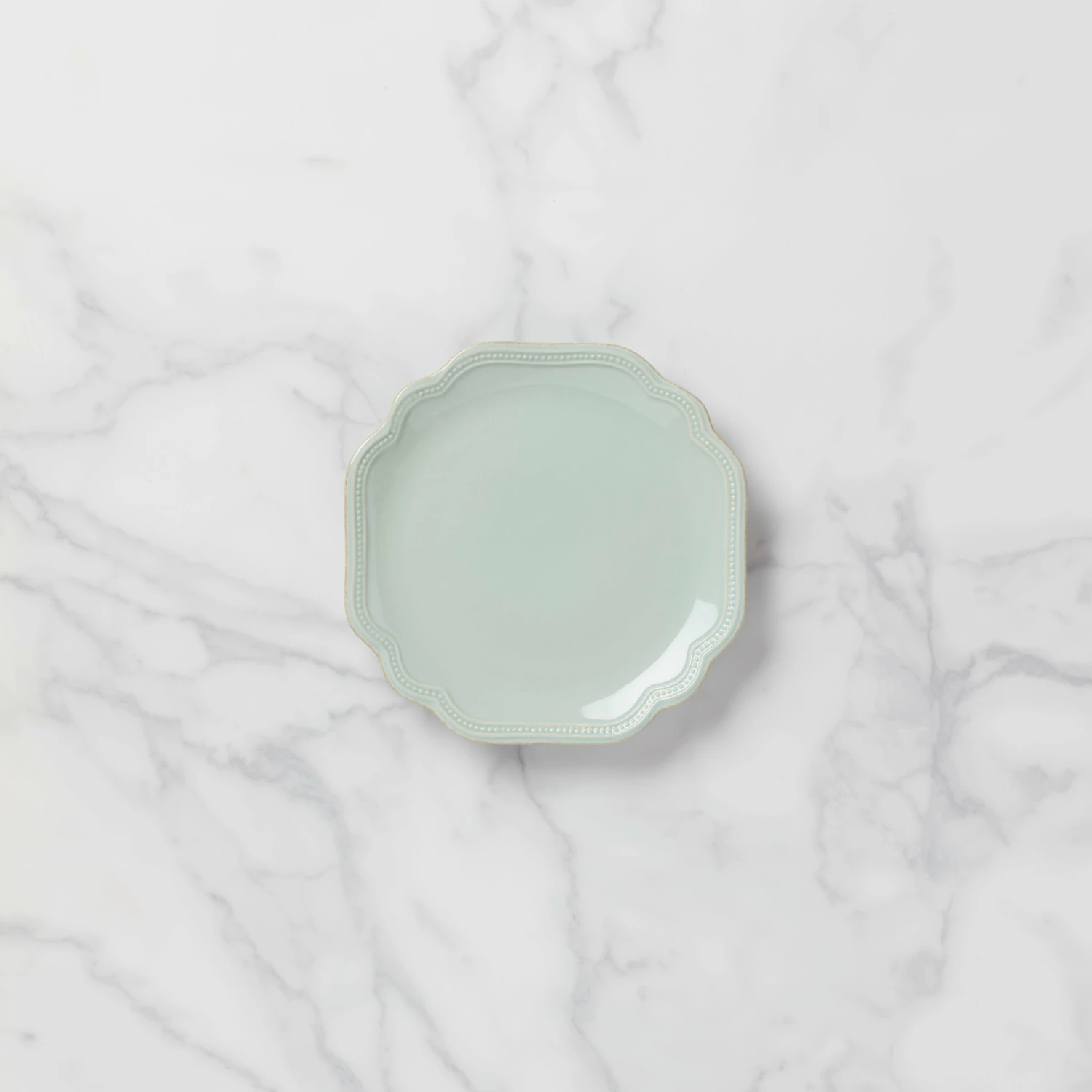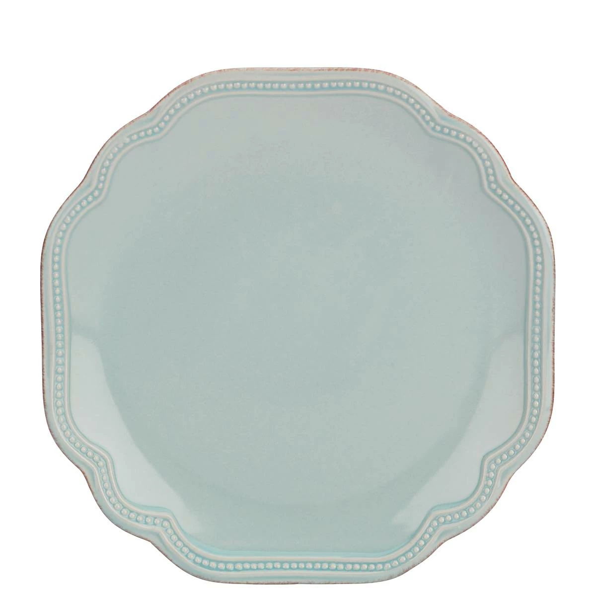 Including an intricate scalloped border with petite textured raised dots and a hand-applied tea stain finish, this durable ceramic stoneware accent plate sits on the table in a cool ice-blue for a touch of elegance that will intrigue guests. This item is microwave and dishwasher-safe, for added convenience.