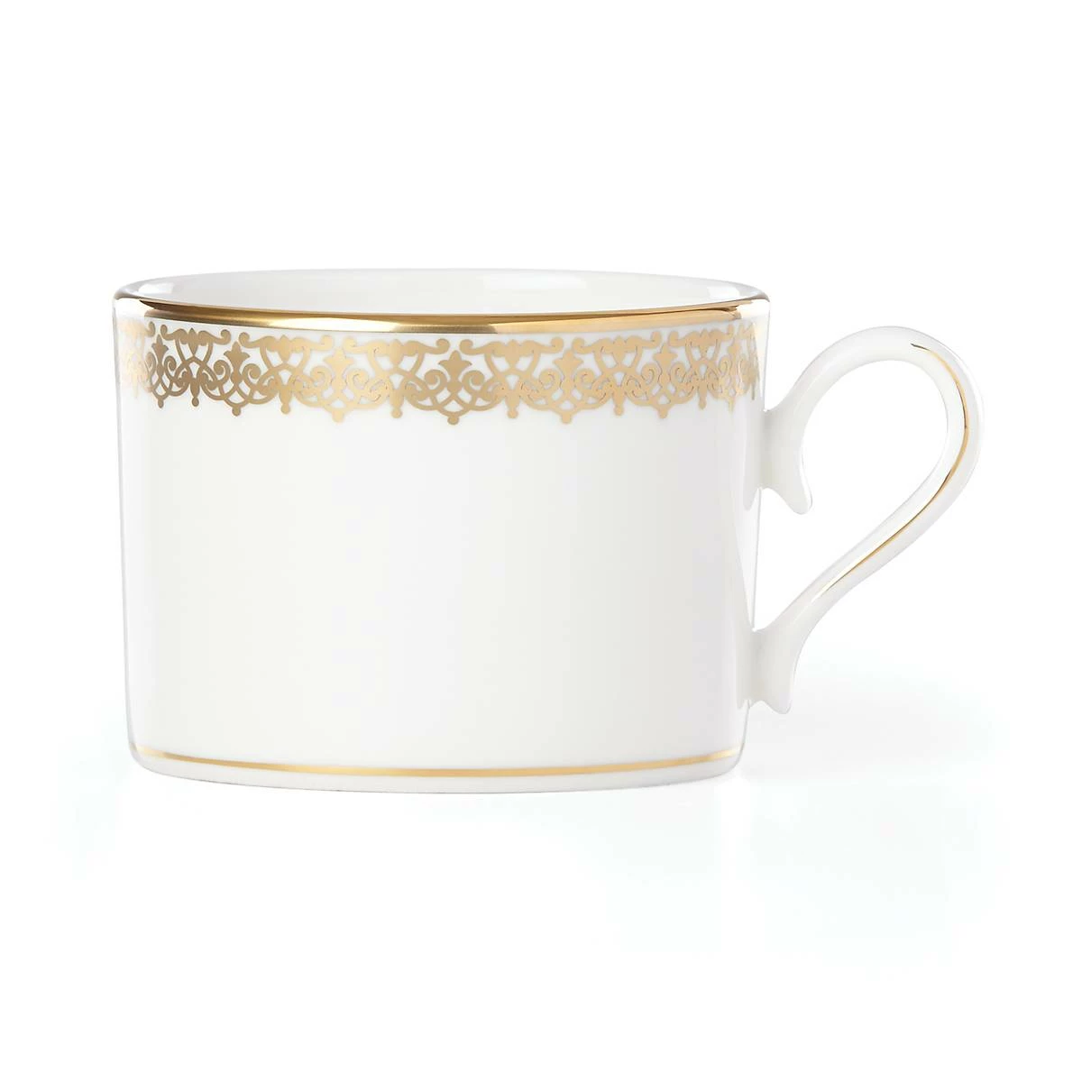 Ideal for coffee or tea during dessert, the impressive Lace Couture Gold Cup is crafted of durable and pristine white bone china, and is framed by a laced motif that is similar to a rich tapestry. This ornate cup is accented in precious 24-karat gold, and is dishwasher-safe for added convenience.