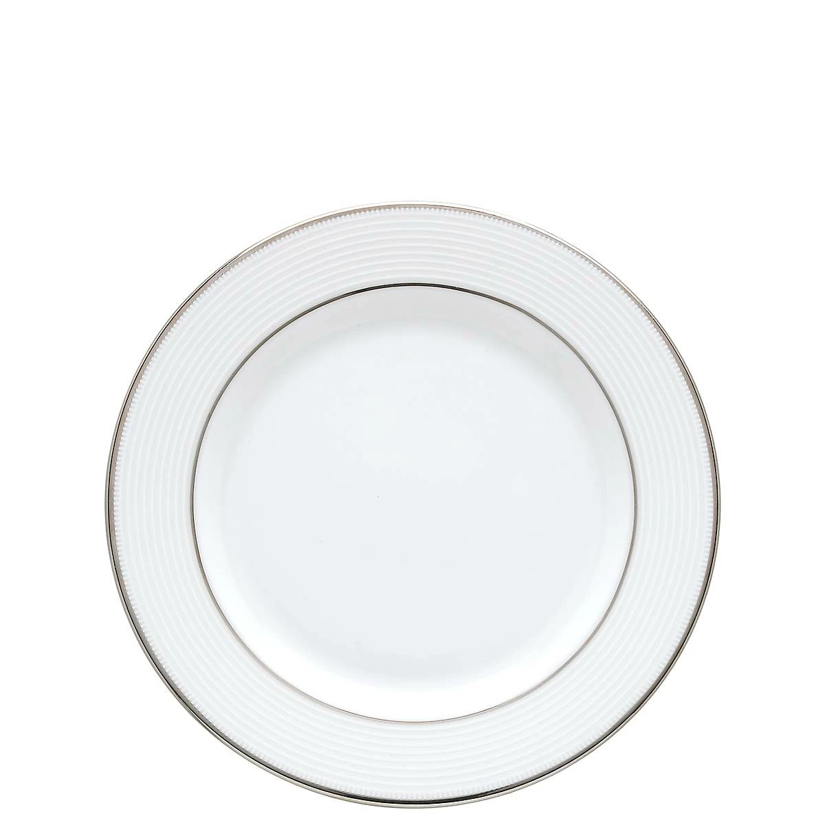Elegant and classic, the Opal Innocence Stripe Gold Bread Plate is framed by a collection of pristine raised white stripes inside two concentric circles of precious 24-karat gold accenting. This ornate and durable bone china plate has a subtle texture, and is dishwasher safe for added convenience.