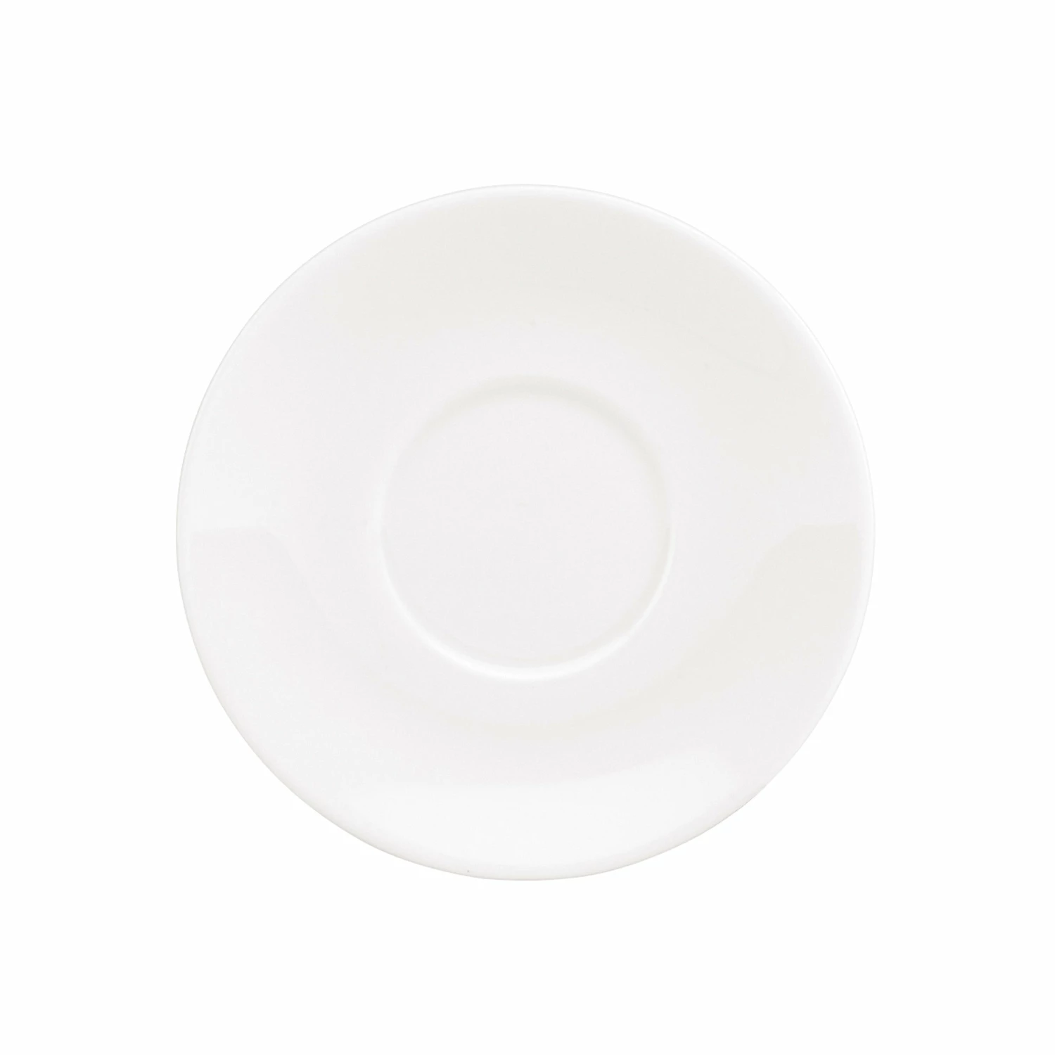 Minimalist in design and contemporary in shape, this modern round saucer is crafted of durable bone china. Perfect for accompanying a cup or even for enjoying dessert, this saucer offers both functionality and style. This piece is dishwasher and microwave-safe for added convenience.