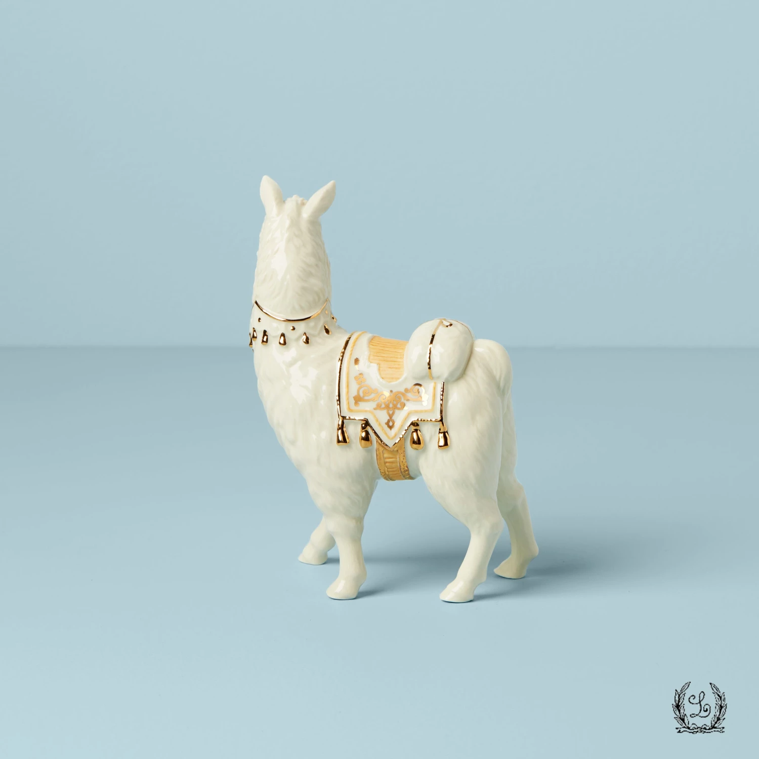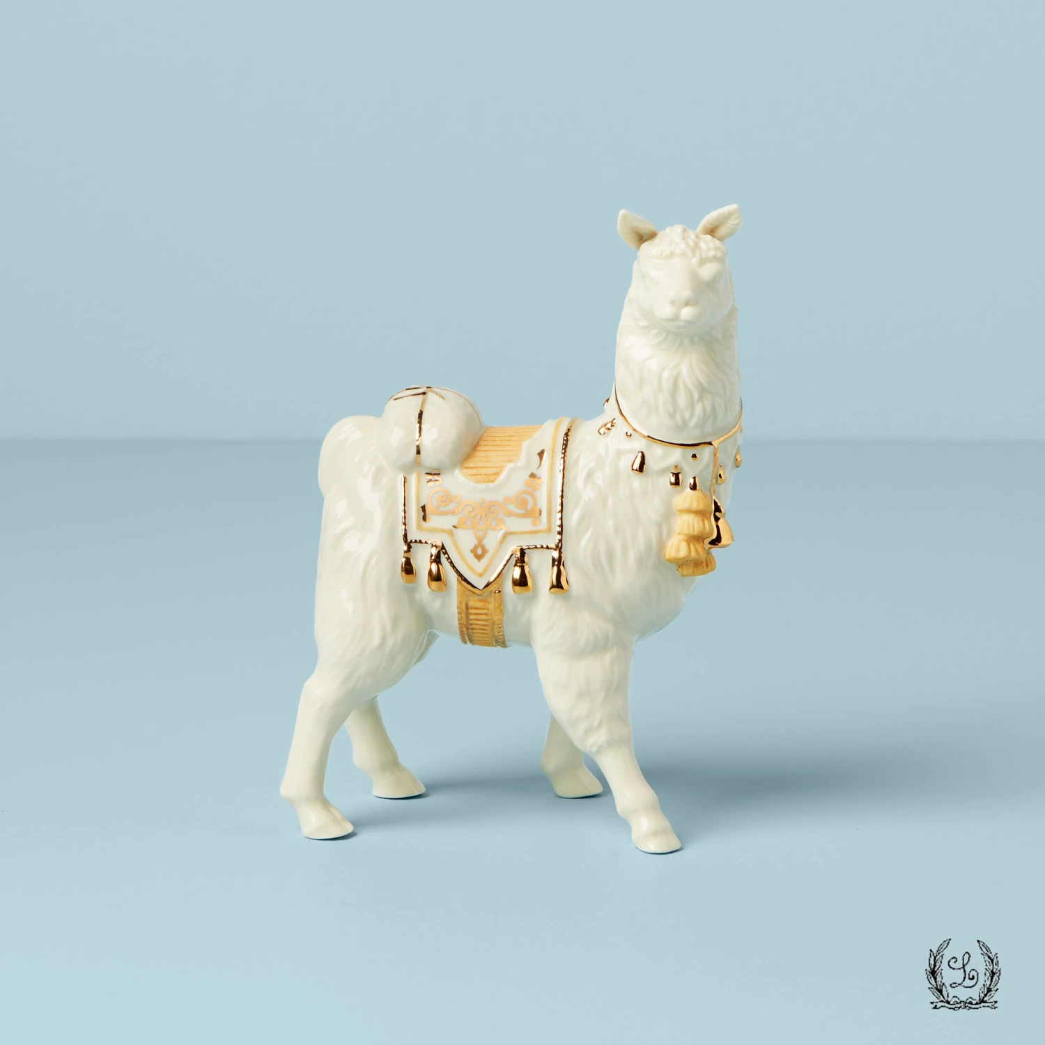 New for 2019, this delicate llama figurine belongs to our First Blessing Nativity™ collection. Complete your Christmas scene with this ceramic figurine that is hand-painted and features 24-karat gold accents for a regal finish.