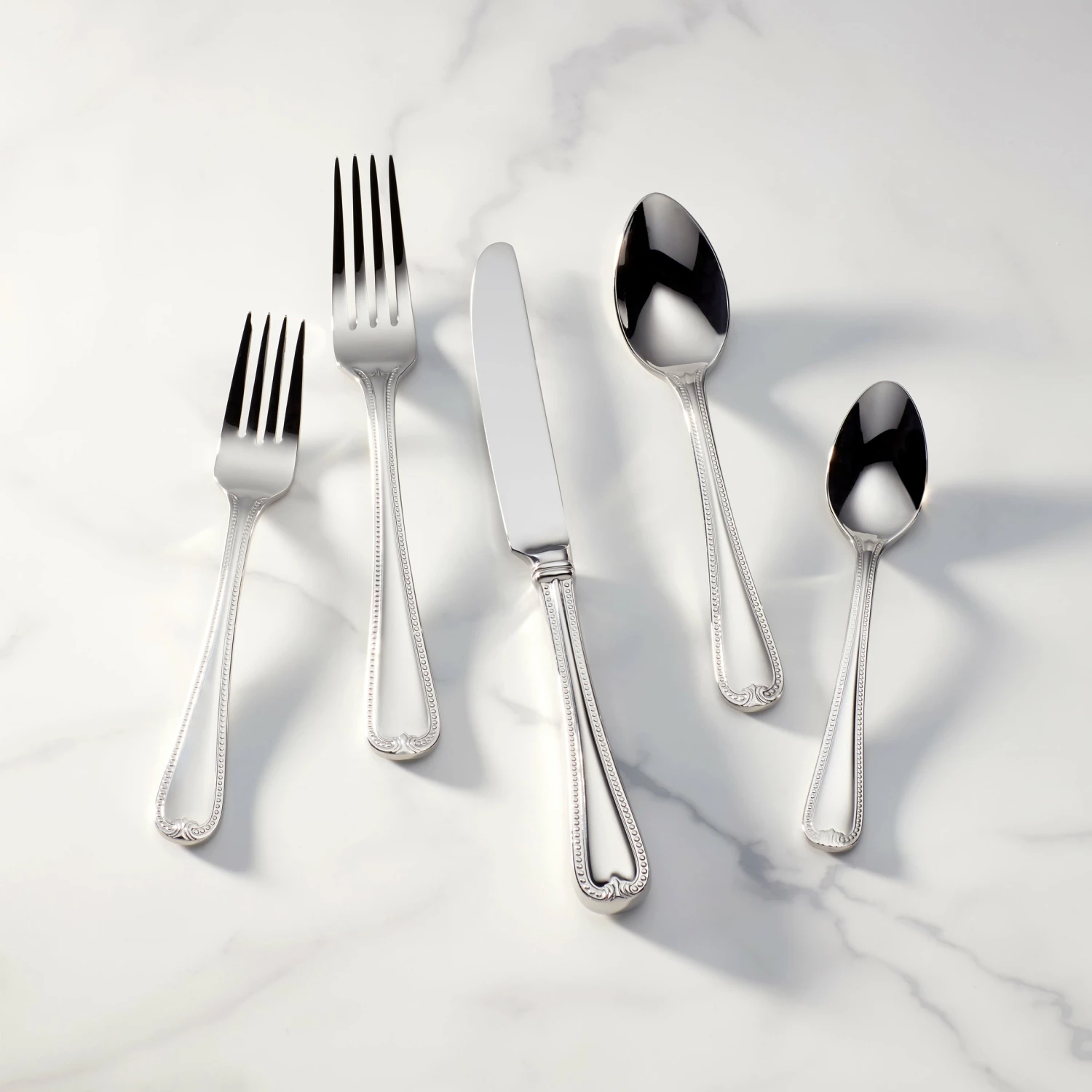 Casual and stylish, the Vintage Jewel 5-piece Place Setting is crafted from durable 18/10 stainless steel. This set is dishwasher-safe, and includes a dinner fork, dinner knife, salad fork, tablespoon, and teaspoon.