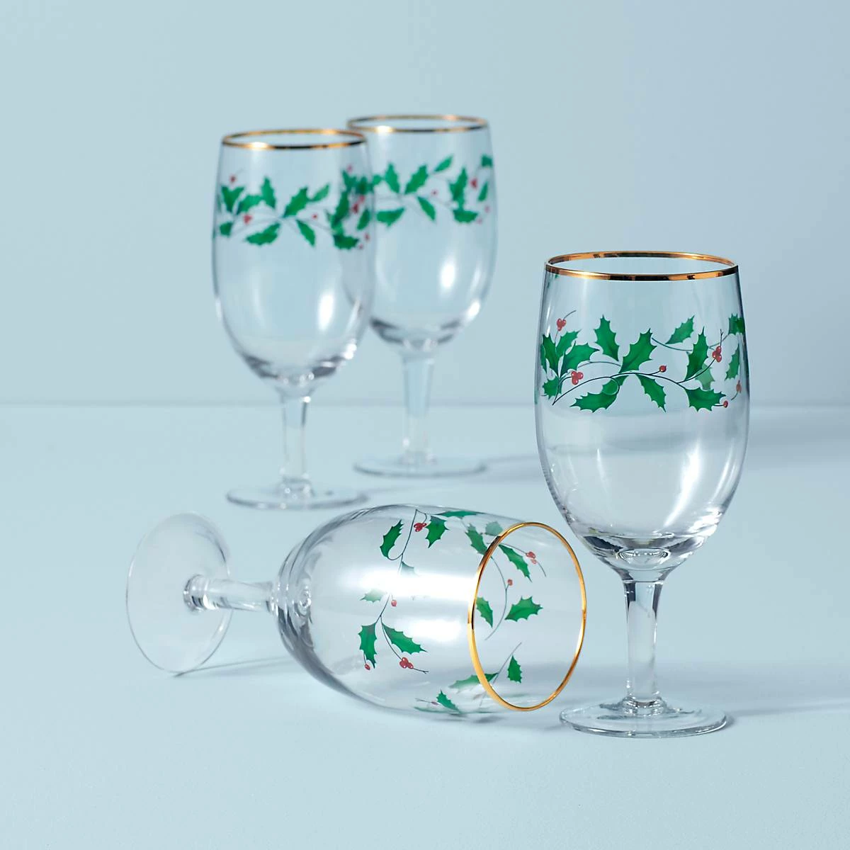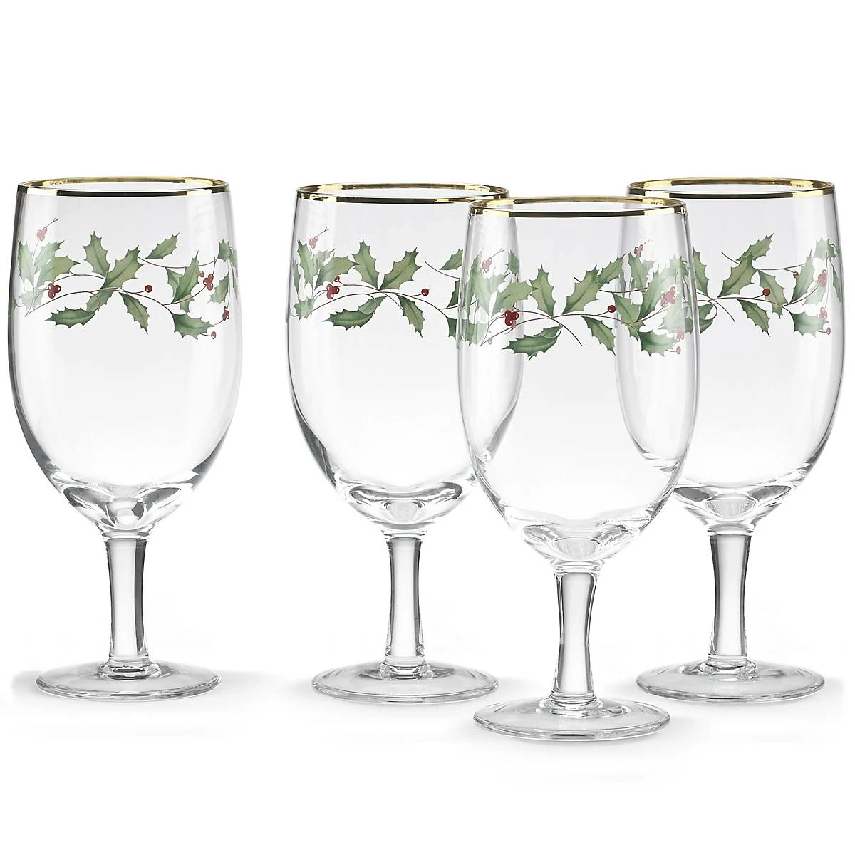Enjoy some holiday libations with the 4-piece Iced Beverage Glass Set. A festive motif of holly leaves decorate the sides of these 24-karat gold accented glasses. This set is ideal for serving a cold beer or other chilled beverages.