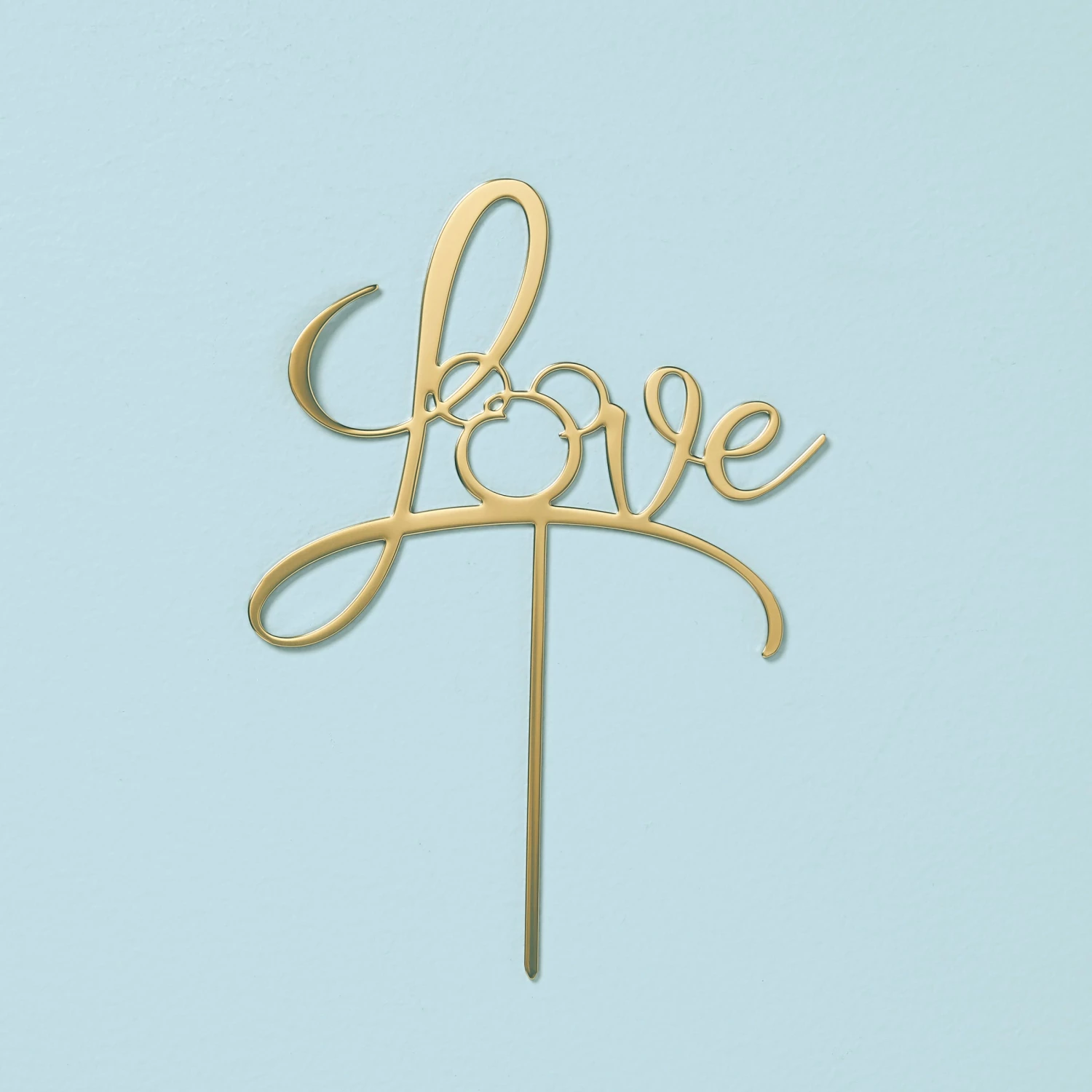 Let the world know you’re in love! Shout it from the rooftops with this magical statement piece. A cake topper that will let your friends and family share the love on your special day. Featuring elegant cursive and a glowing golden hue.