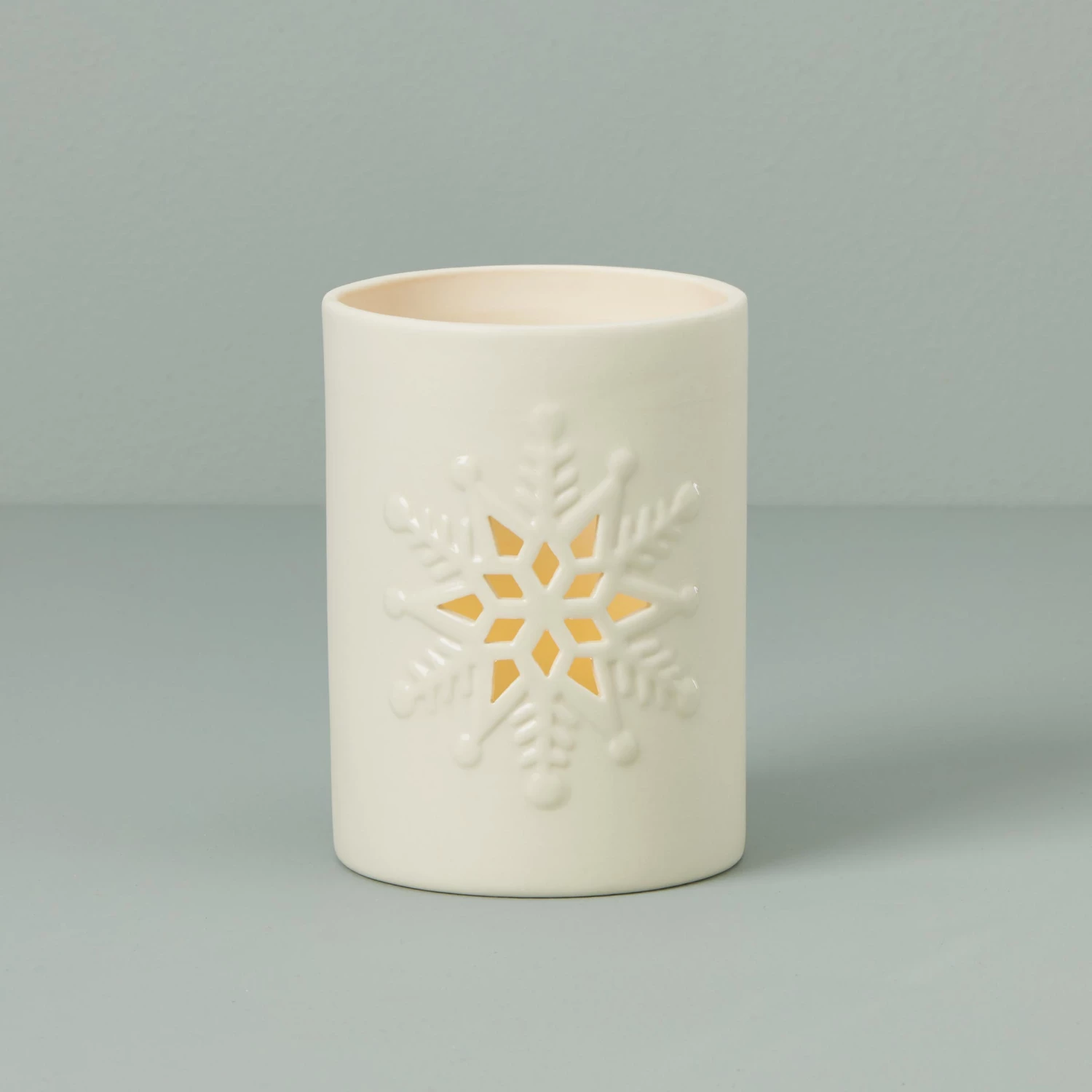 Add a little bit of winter tranquility to your home with this peaceful votive. Crafted in creamy porcelain, this votive is perfect for any table or mantel.