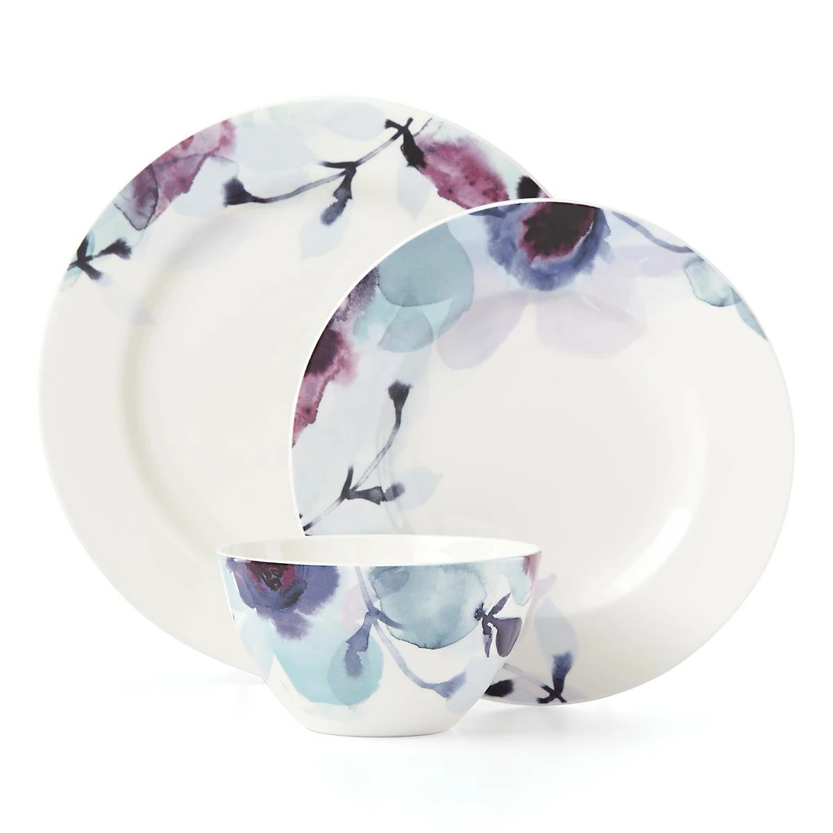 Warm and inviting, the Indigo Watercolor Floral 12-piece dinnerware set features a charming floral watercolor motif in shades of blue and purple. Crafted of durable ceramic porcelain, this serene dinnerware set is microwave and dishwasher-safe, for added convenience.