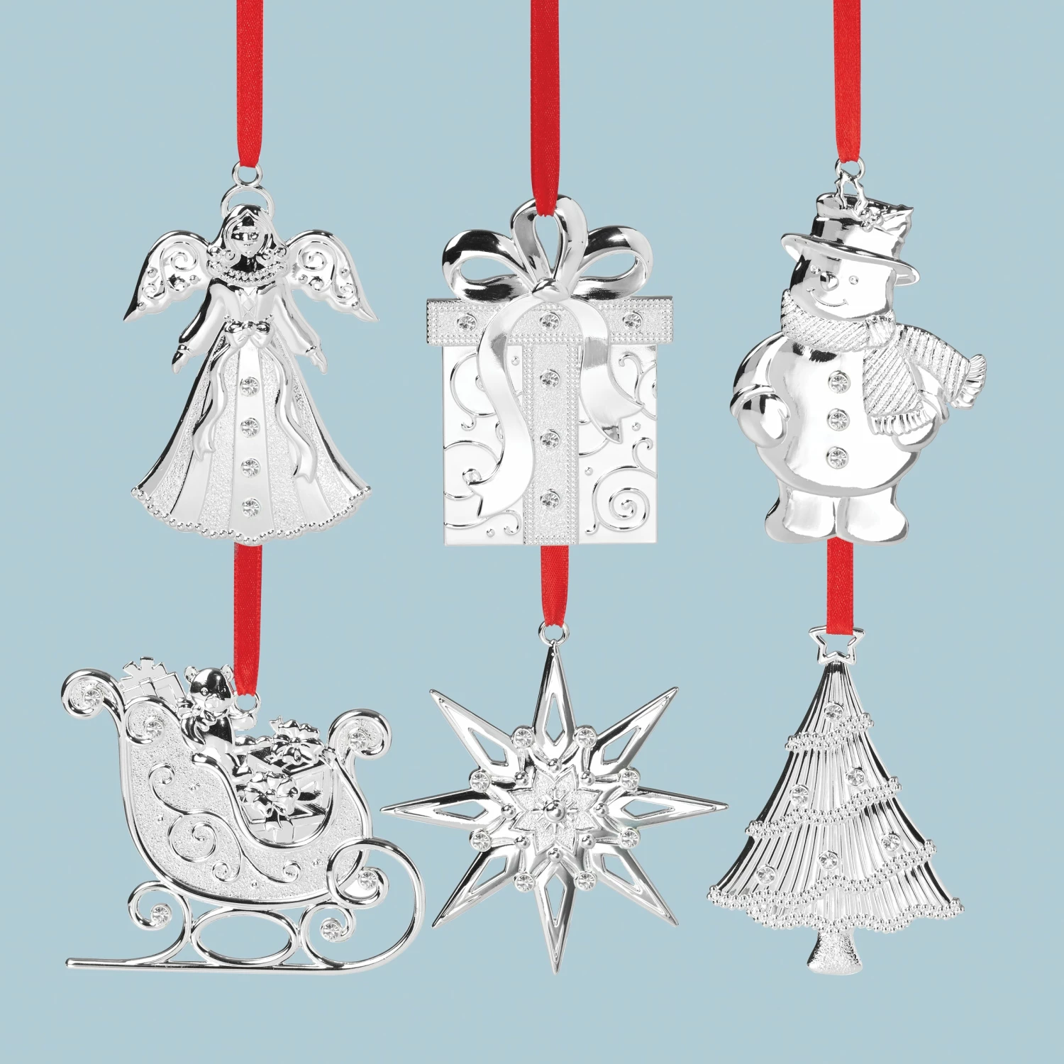 Exquisitely crafted, these pristine silver-plated ornaments feature ornate details of scrollwork, textured finishes and beaded trims. Each piece twinkles with clear-colored gemstones for a shimmering look that you’ll be happy to have on your tree. Keep all six for yourself or give one to each of your friends for a delightful Christmas gift!