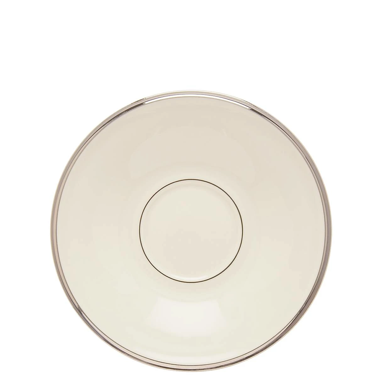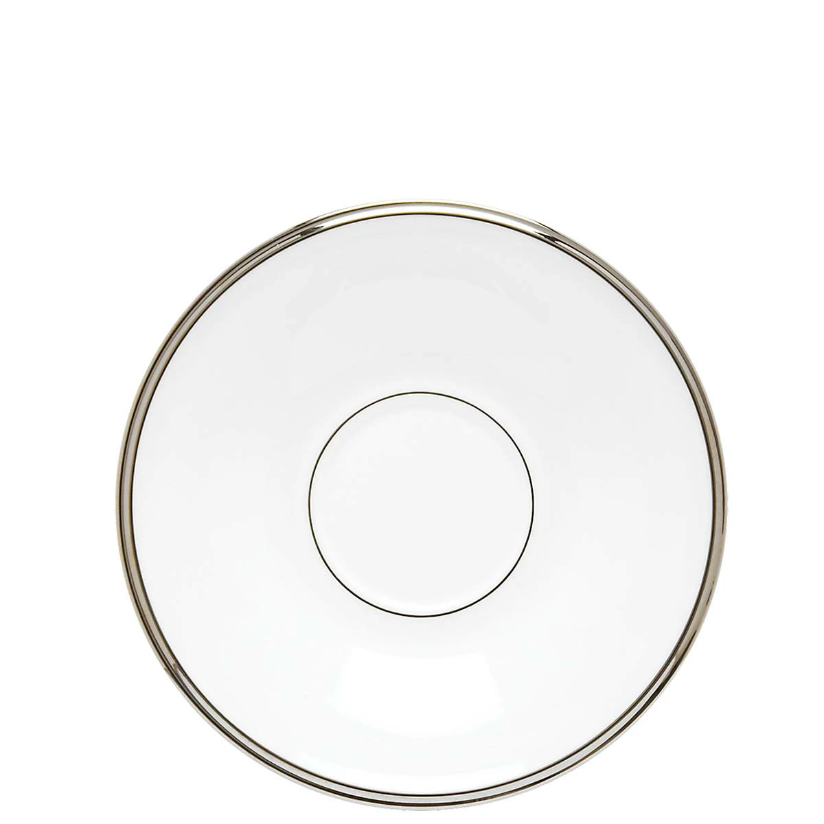 Embellished with precious platinum trim, this saucer is crafted in durable white bone china. From the Solitaire White Collection, this popular dinnerware bears a rich yet simple design, ideal for combining with similar sets. This item is dishwasher-safe, for added convenience.