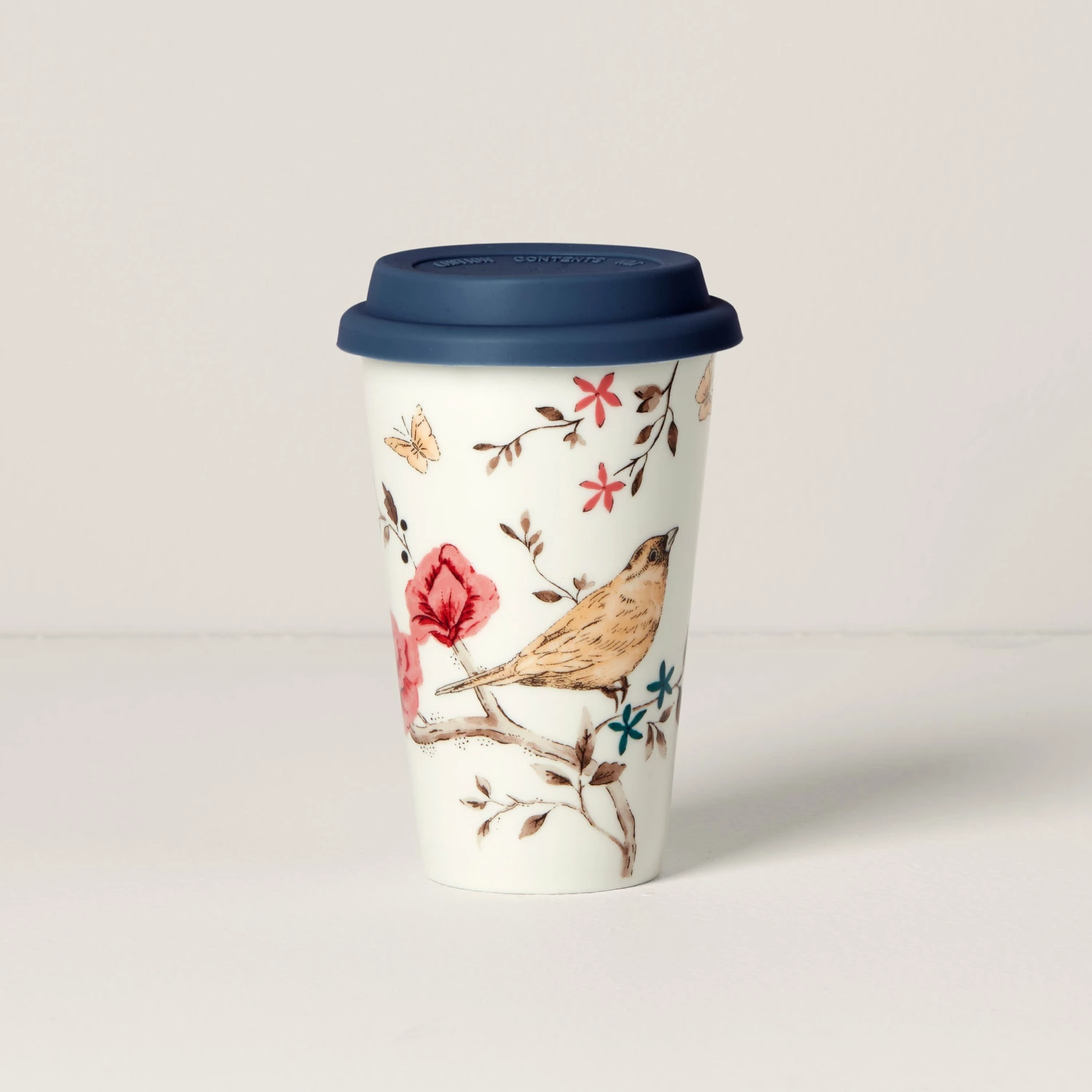 Keep your coffee warm or your water cold with this delightful thermal travel mug from our Sprig & Vine collection. Crafted of durable porcelain, it’s designed to keep your drinks at the same temperature while you’re on the go all day! The charming design matches back to our beautiful dinnerware pattern of bright botanicals and chirping birds. It’s bound to be one you’ll reach for in your cabinet over and over again.
